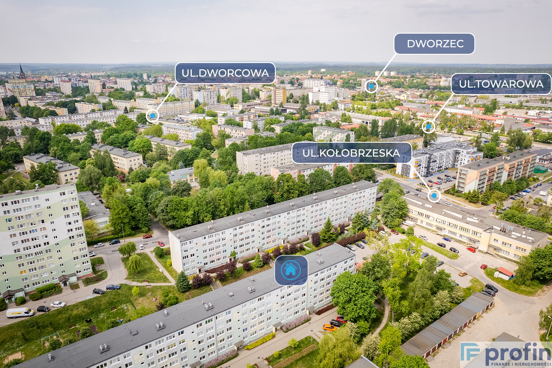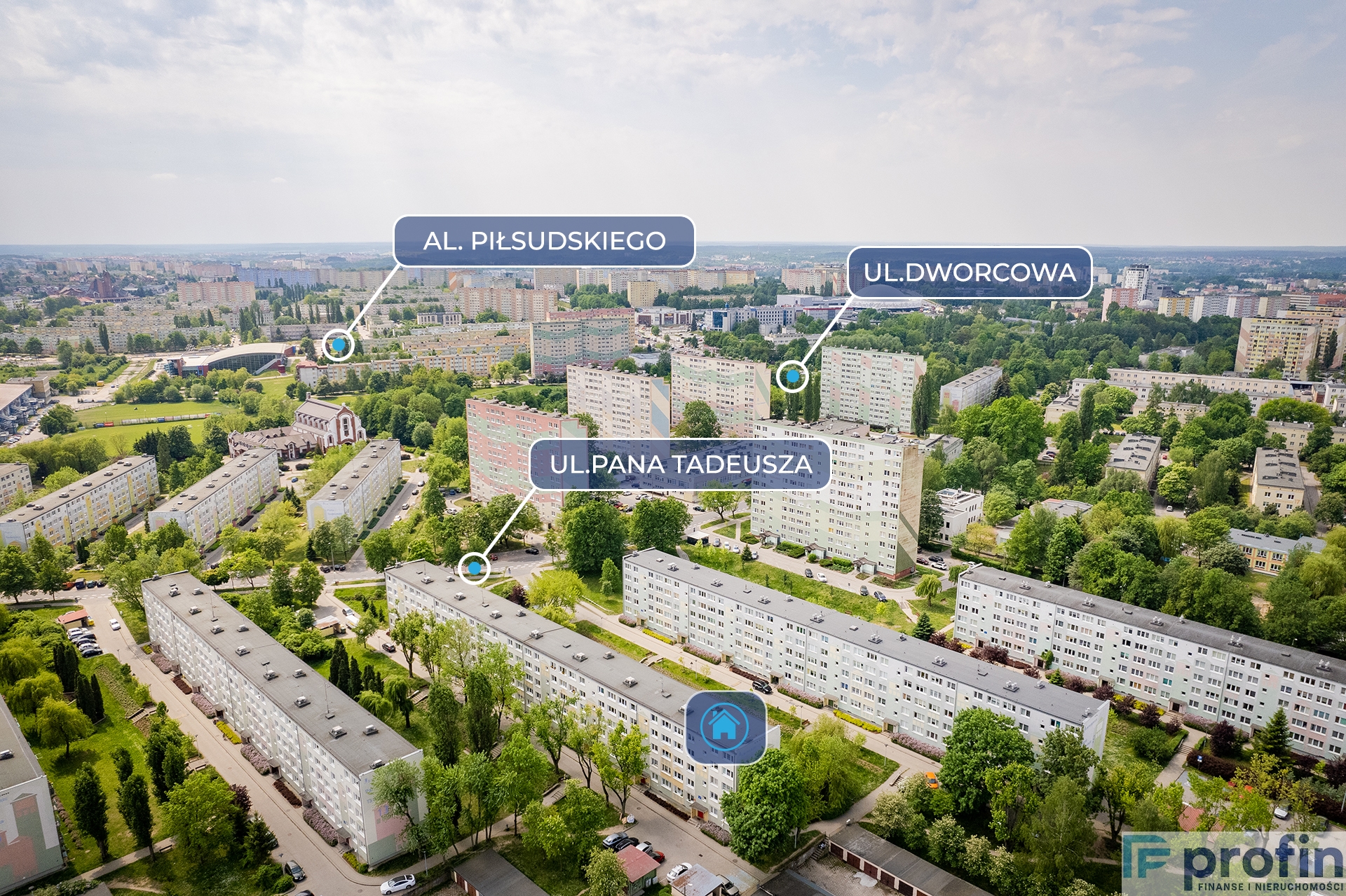 Mieszkanie położone jest na popularnym osiedlu Pojezierze — spokojnej, a jednocześnie bardzo dobrze skomunikowanej części Olsztyna. W najbliższym otoczeniu znajdują się liczne przystanki autobusowe, zapewniające szybki dojazd do centrum i pozostałych dzielnic miasta. W okolicy dostępne są sklepy, punkty usługowe oraz placówki edukacyjne, w tym szkoły i przedszkola. Osiedle otaczają tereny zielone, a w niewielkiej odległości znajduje się Park Kusocińskiego. Lokalizacja jest przyjazna zarówno rodzinom, jak i osobom ceniącym spokój i wygodę na co dzień.