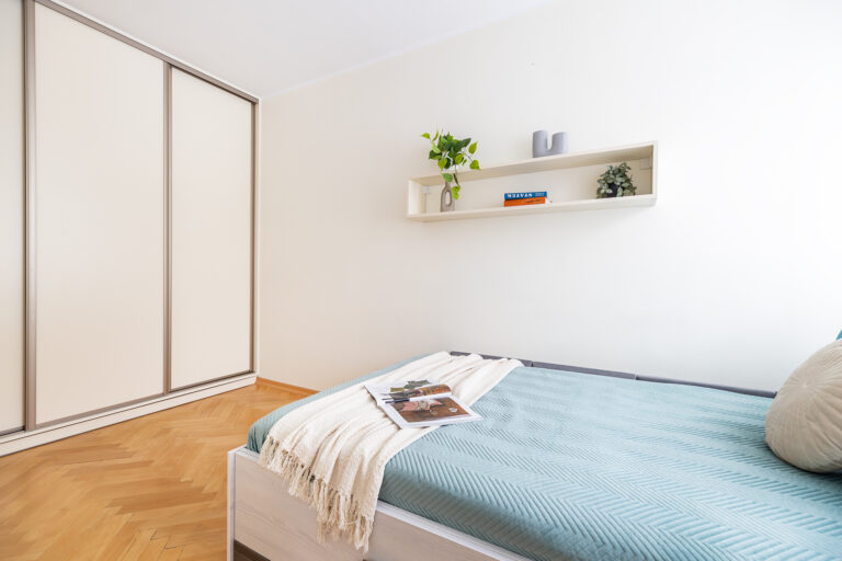 -Dwa pokoje (9.50 m2 każdy) sprawdzą się jako sypialnie lub pokój dziecka. W obu pojemne szafy w zabudowie.