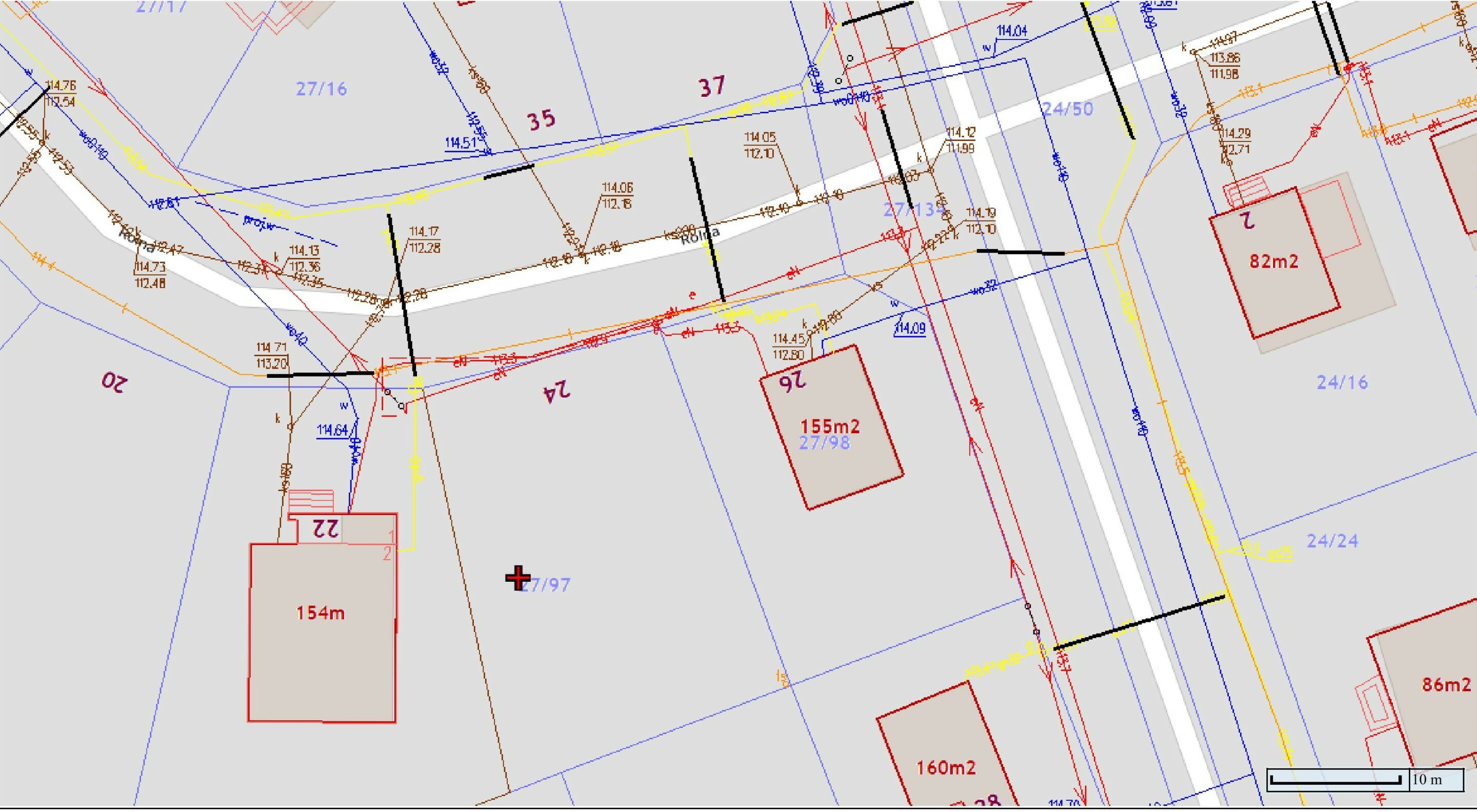 Wodociąg, kanalizacja oraz sieć gazowa w drodze przy granicy działki.