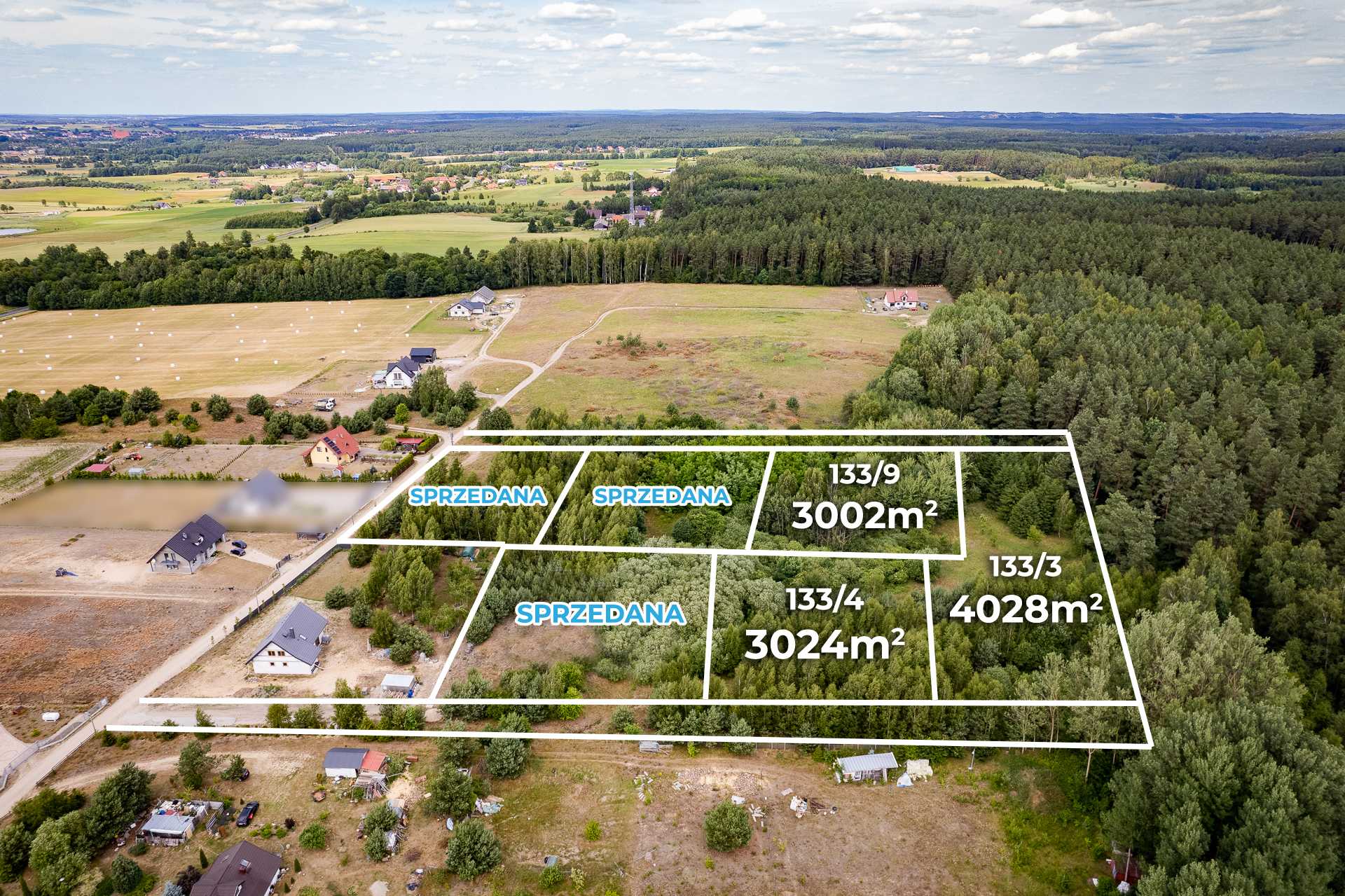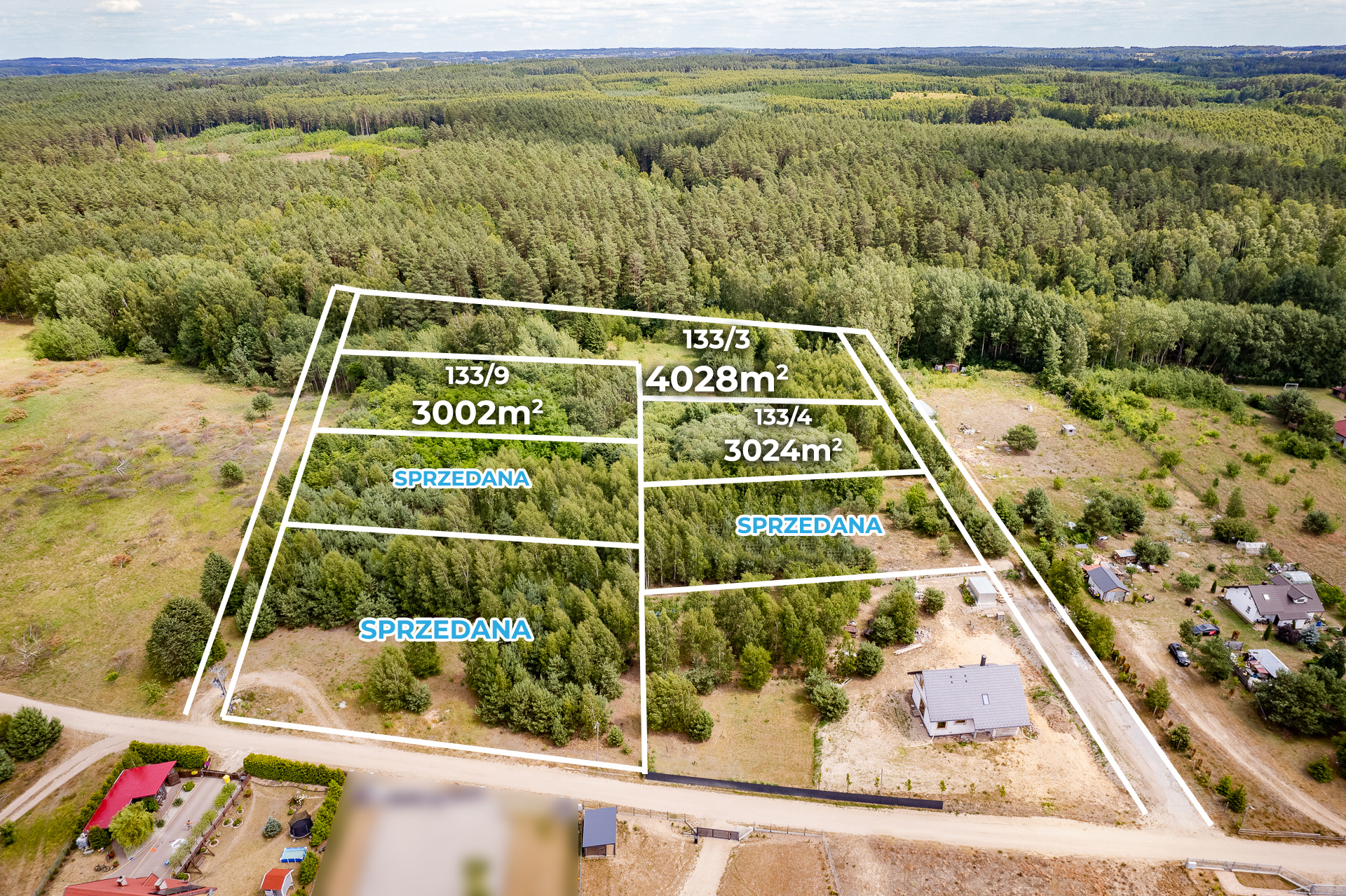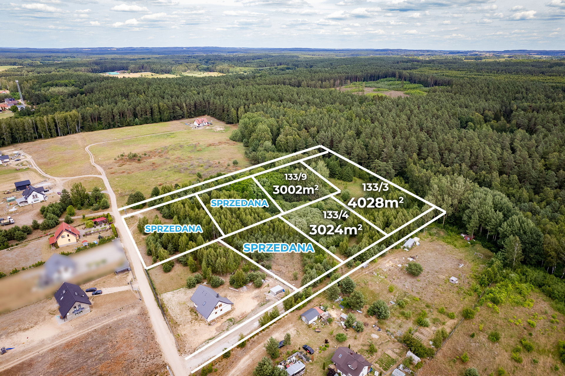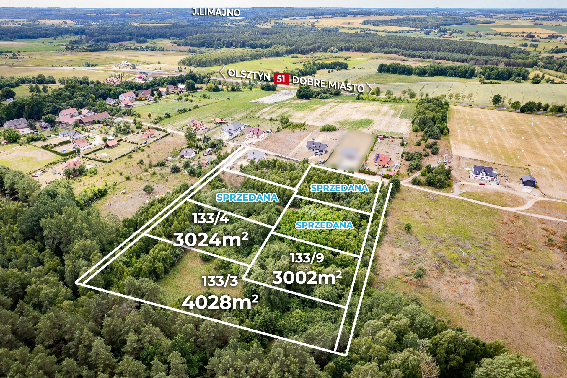 Oferujemy do sprzedaży działki w otoczeniu lasu, 6 km od centrum Dobrego Miasta.