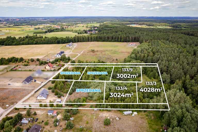 nr działki 133/9 powierzchnia 3002 m2 wymiary 50 m x 60 m.