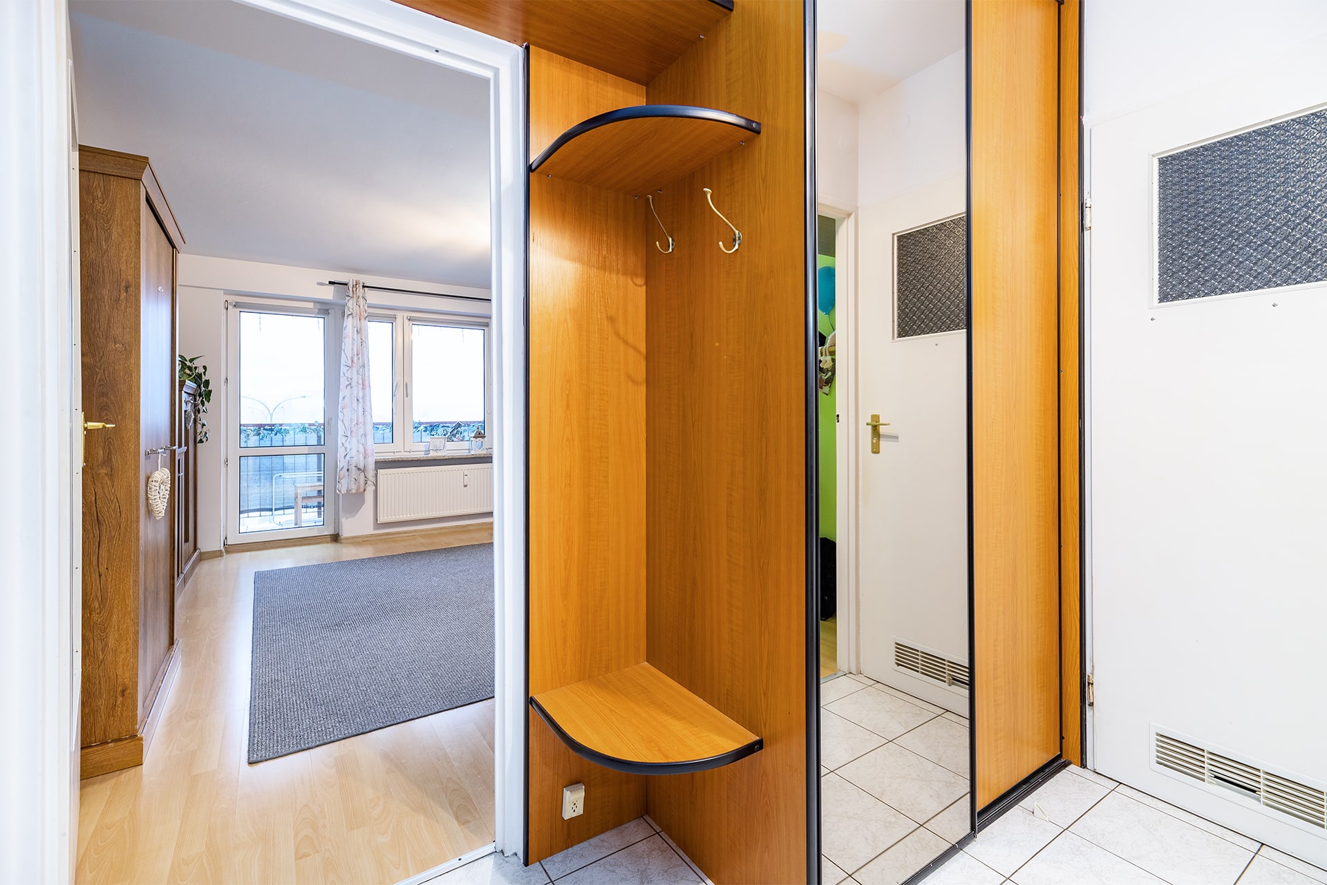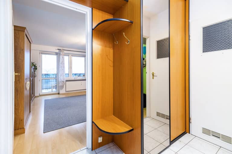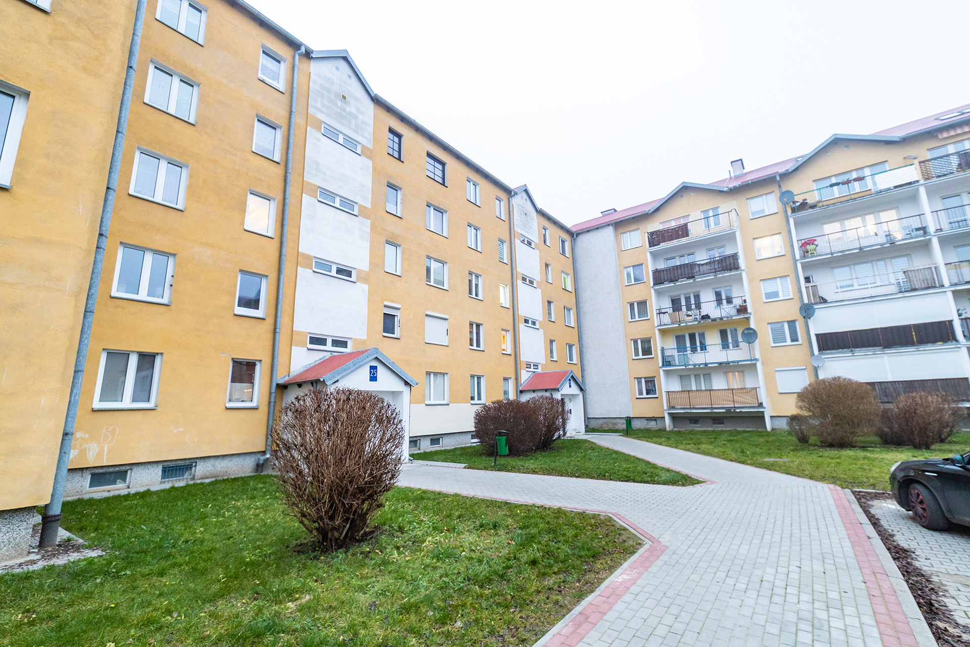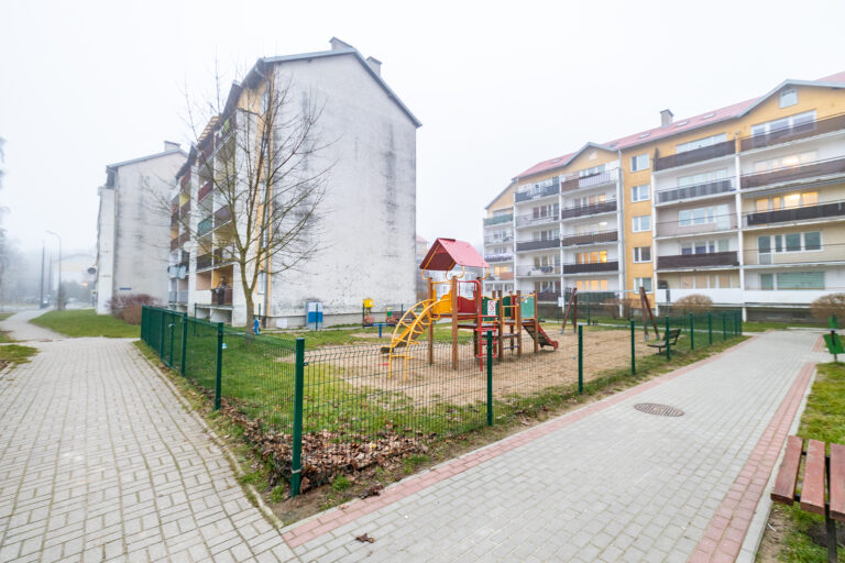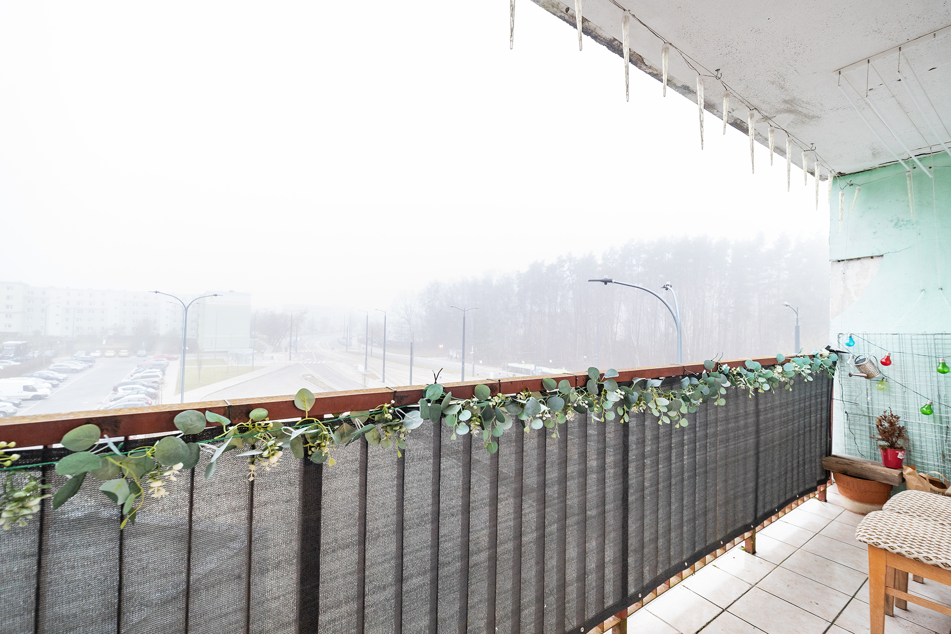 Mieszkanie położone jest na trzecim piętrze w bloku z lat dziewięćdziesiątych. W sąsiedztwie place zabaw, parking osiedlowy i dużo zieleni. Okolica to zaciszna część Pieczewa, położona blisko lasu i zabudowy jednorodzinnej. Osiedle jest świetnie skomunikowane, w bezpośrednim sąsiedztwie pętla tramwajowa.