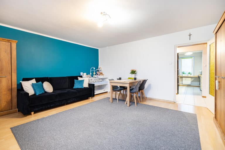 -Mieszkanie dwustronne o korzystnym układzie: salon z dużym balkonem, sypialnia, osobna kuchnia, łazienka z toaletą.